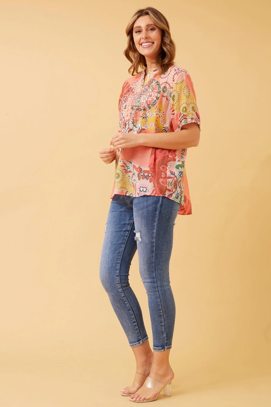 Feel absolutely beautiful in this abstract print top this season! Style with everyday jeans or shorts for a stylish effortless look!