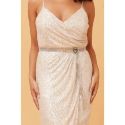 Adorn your waist with the Heart-Shaped Buckle Chain Belt, a statement accessory featuring a chic chain with delicate diamante detail and a heart-shaped buckle. Elevate any outfit with a touch of glamour and a dash of romantic flair.
