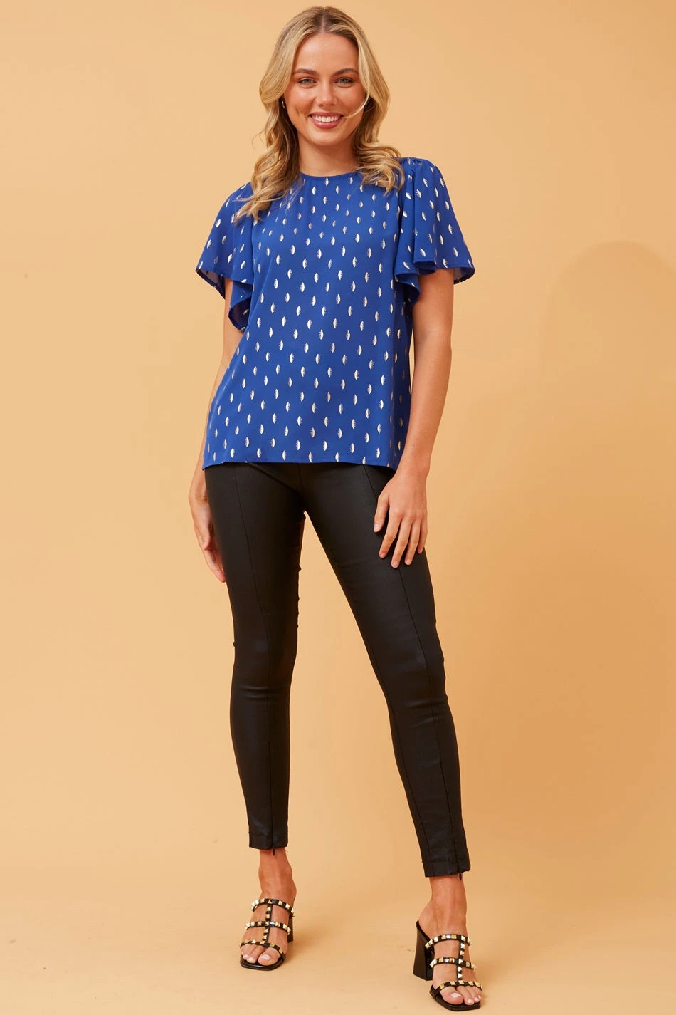 Shine like a star in our ditsy foil print top! Crafted in an all over foil print design, this flattering party top is detailed with on-trend flounce sleeves. Add a clutch bag and high heels to be ready to party in seconds!