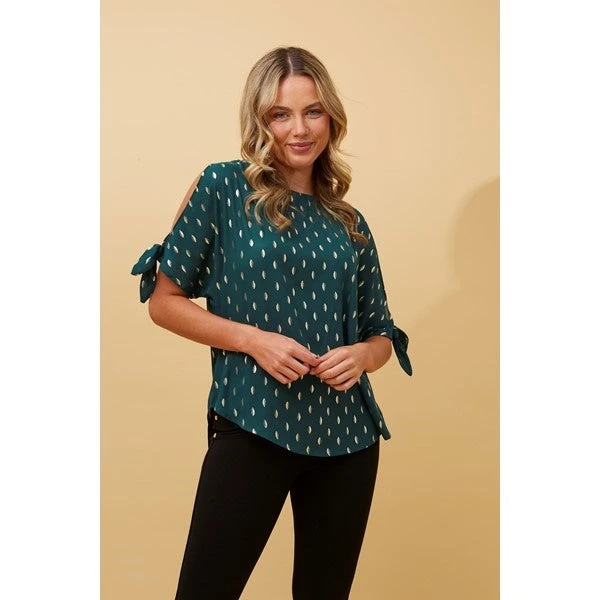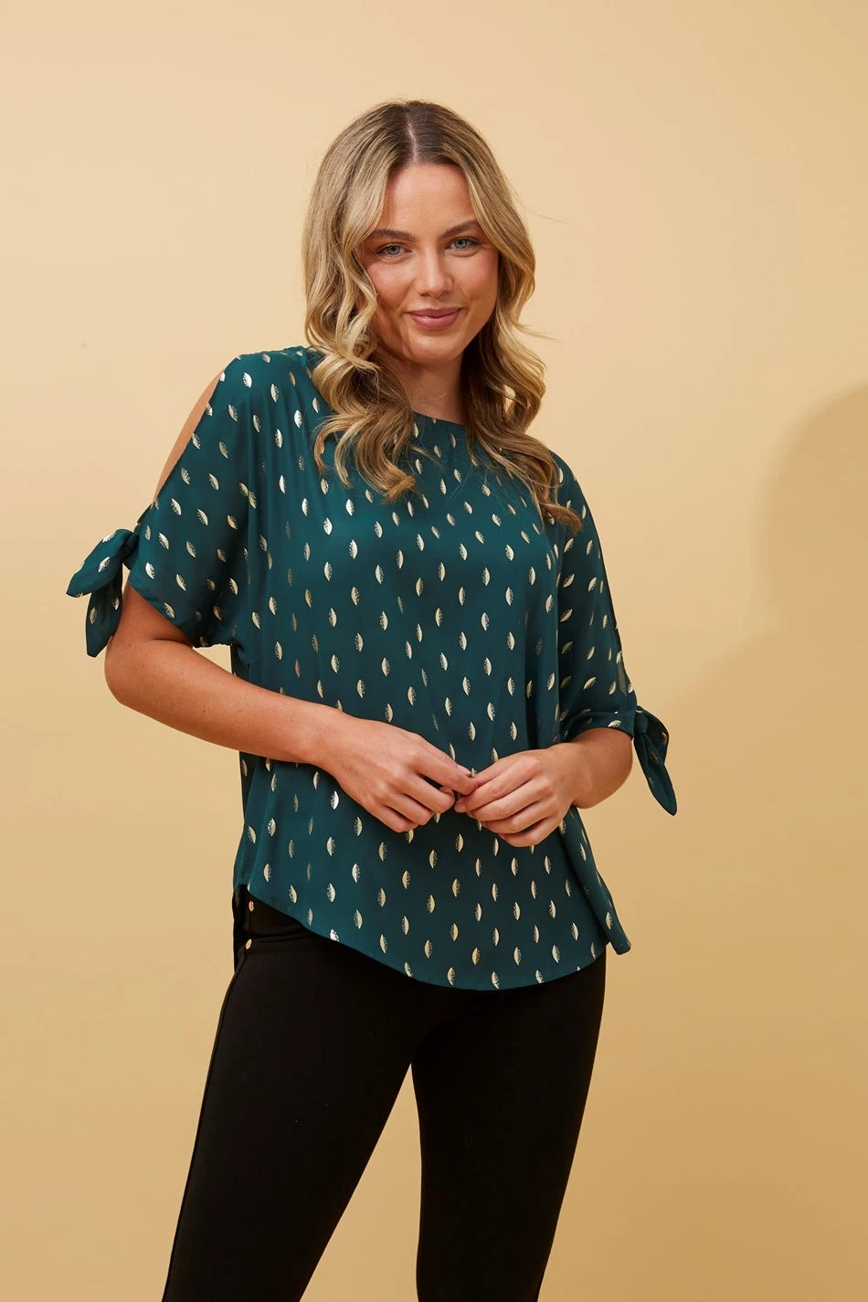Feel absolutely beautiful in this cold shoulder foil print top. Style with skinny jeans and sandals or kicks for an effortless and stylish look!