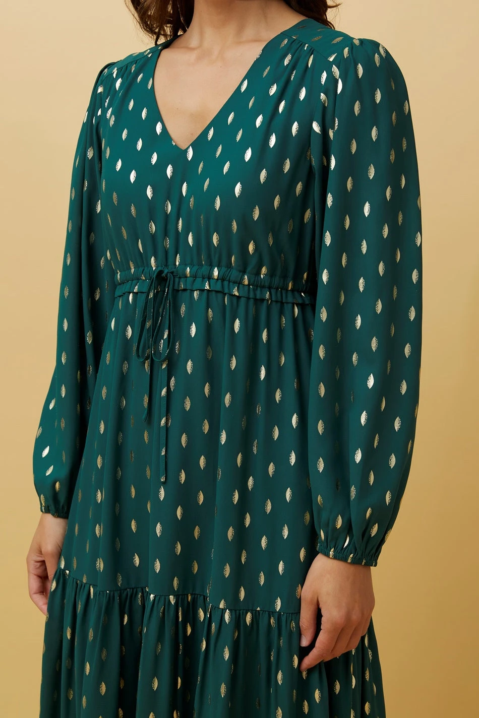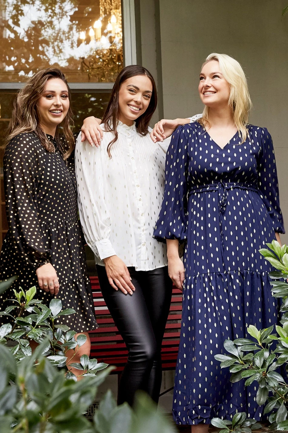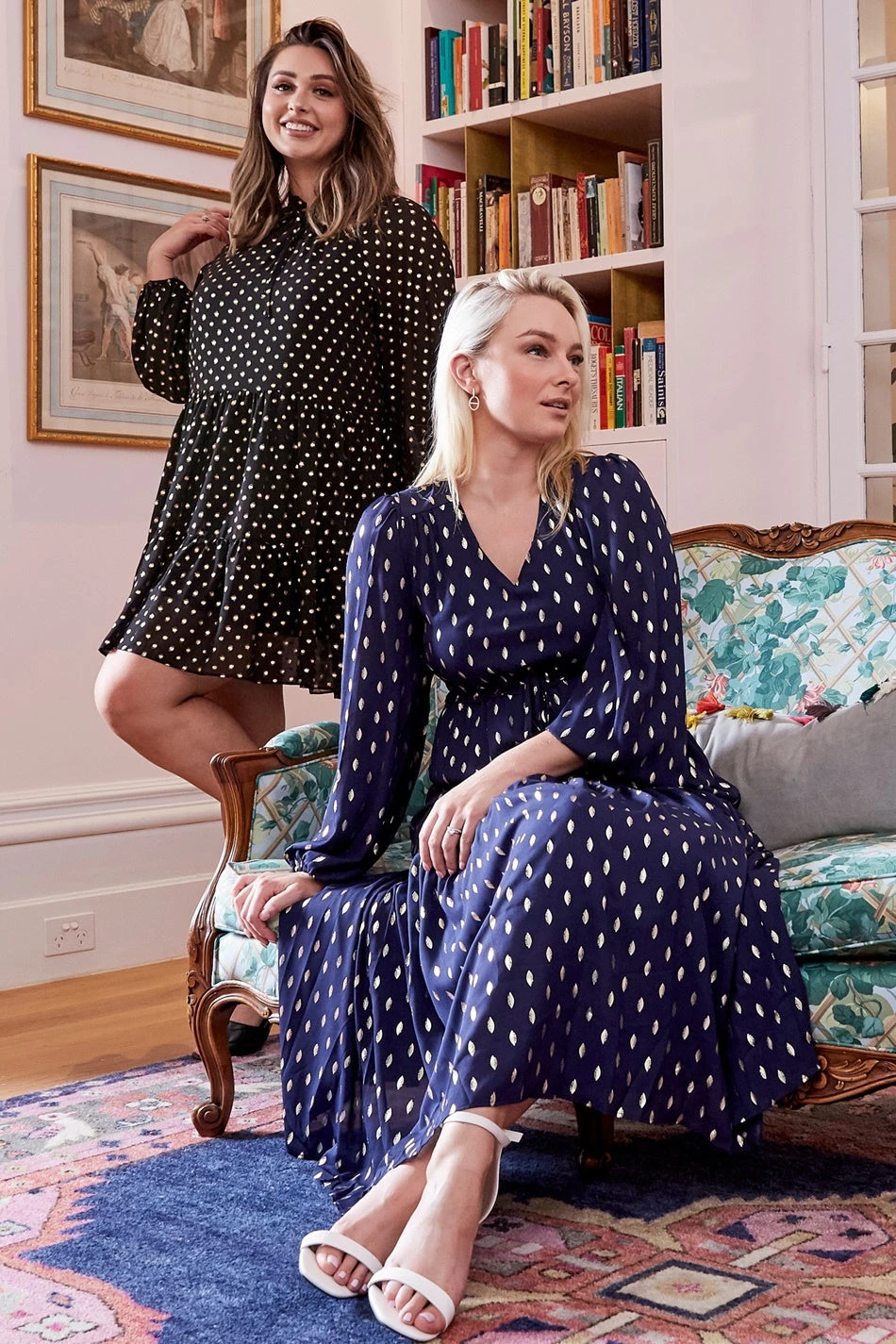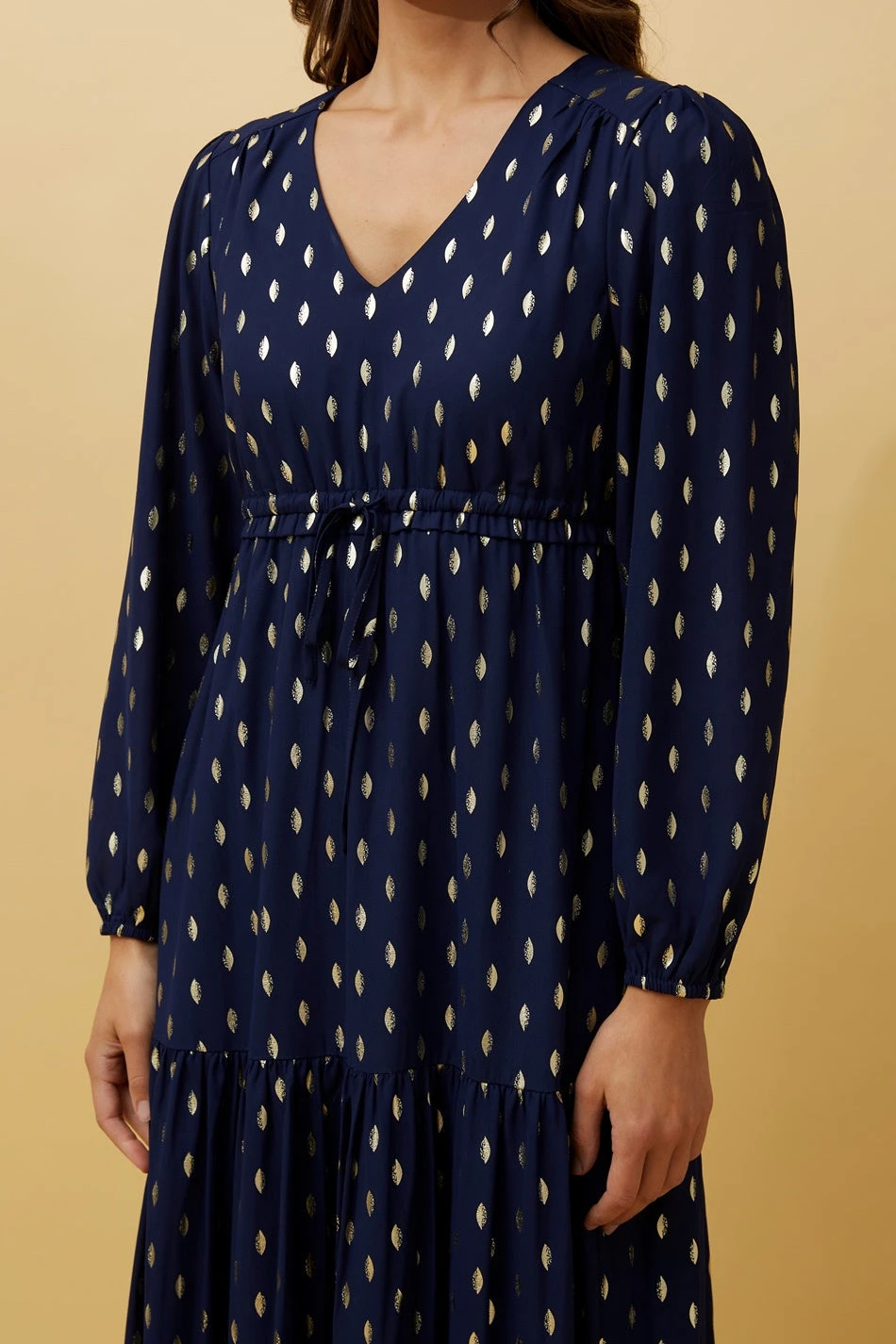 Shine like a star in our ditsy foil print maxi dress! Crafted in an all over foil print design, this flattering party dress is detailed with on-trend layers. Add a clutch bag and high heels to be ready to party in seconds!