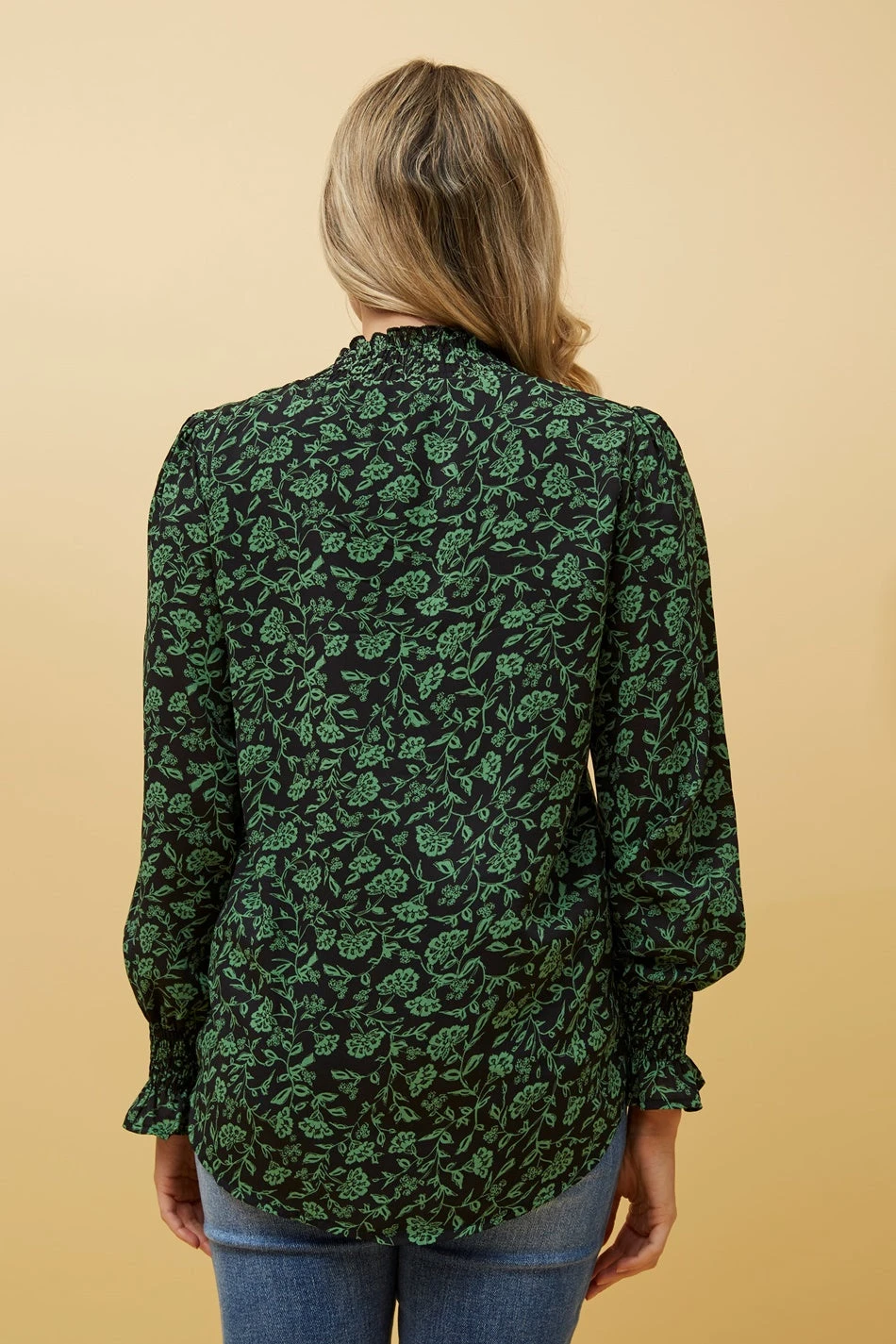 Embrace a sassy feminine look with the Diana floral Print Blouse. Featuring a high shirred neckline and long sleeves with shirred cuffs, this top is ideal for your informal evenings. Match this with your favourite pants and strappy heels to complete the look!
