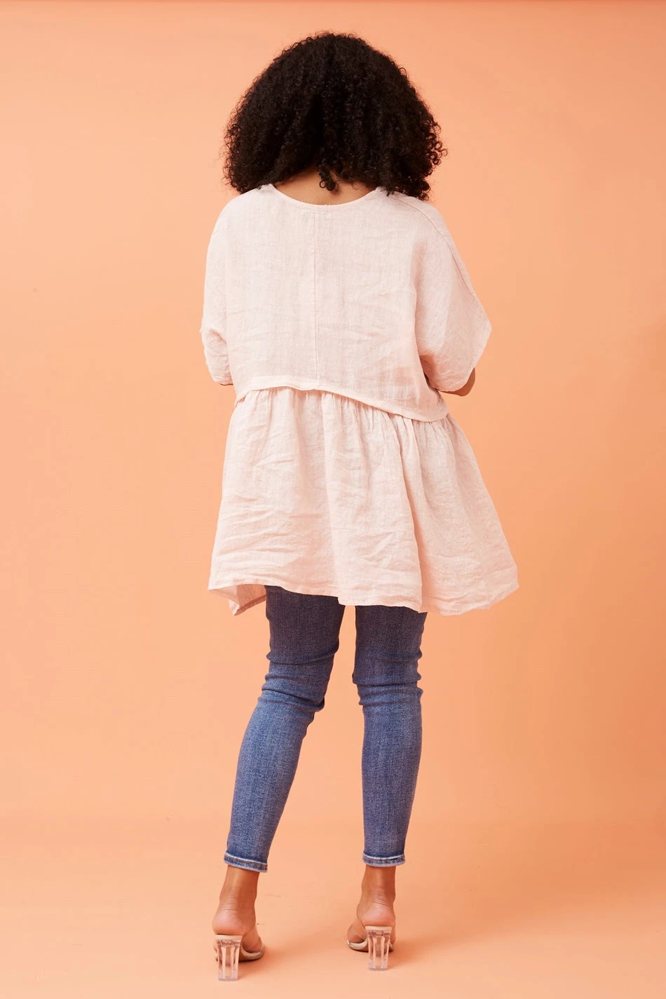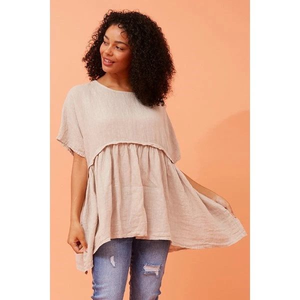 A beautiful top can form the centrepiece of any wardrobe and this top is no exception. Featuring a round neckline, mid-length sleeves and a baby doll style bodice- this versatile linen top can be dressed up or down with ease.