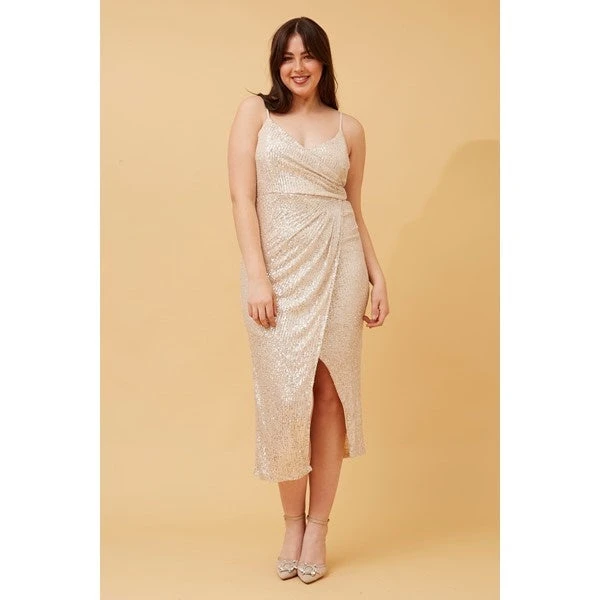 Cut in an all over delicate sequin fabrication, with full stretch this is the perfect little party dress. Featuring a midi length silhouette, with leg split and shoulder straps, the Lexis sequin midi dress is a fun, flirty number.