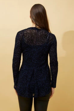 Achieve a chic day to night look with this perfect floral flocking mesh top. Layer over a Cami, black pencil skirt and heels for a sophisticated work or outing ensemble.