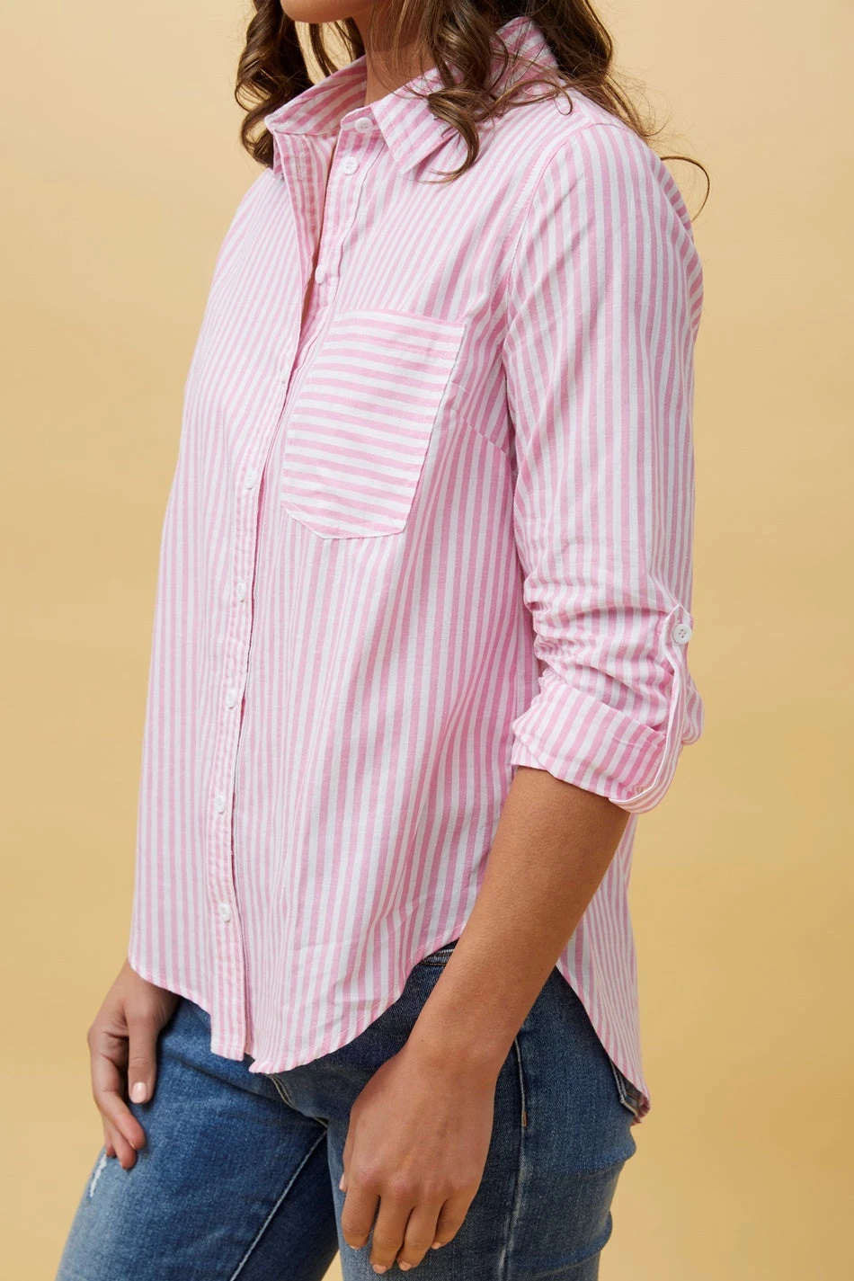 Add a stylish twist to your workwear wardrobe this summer! Easy to style this shirt with everyday jeans, shorts or skirts, tuck in one side for an effortless street look!