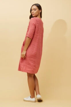 Our Made in Italy minimalistic linen dress comes with 3/4th sleeves, twin side pockets and an oversized fit! With a light-weight airy fabric, this dress is a perfect summer staple! Match this with your favourite sandals to complete an effortless summer sophistication look!