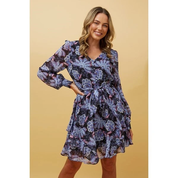 Embrace a sweet feminine look with this long sleeve floral mini dress! With a stunning floral print and ruffle tiered overlay, this mini dress can go from casual to statement based on your mood. Perfect for brunch with the ladies, or dinner with your colleagues, this dress fits all occasions. Match it with your favourite heels and chain strap bag for a sweet feminine look!