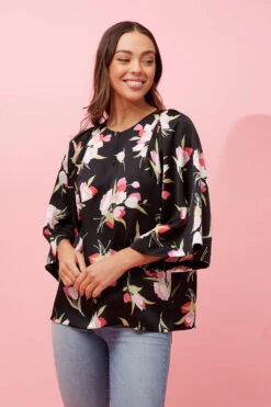 Stay comfortable and stylish this season in our new blouse. Add this elegant floral blouse to your workwear wardrobe this season! Easy to style with jeans or trousers for an effortless chic look!