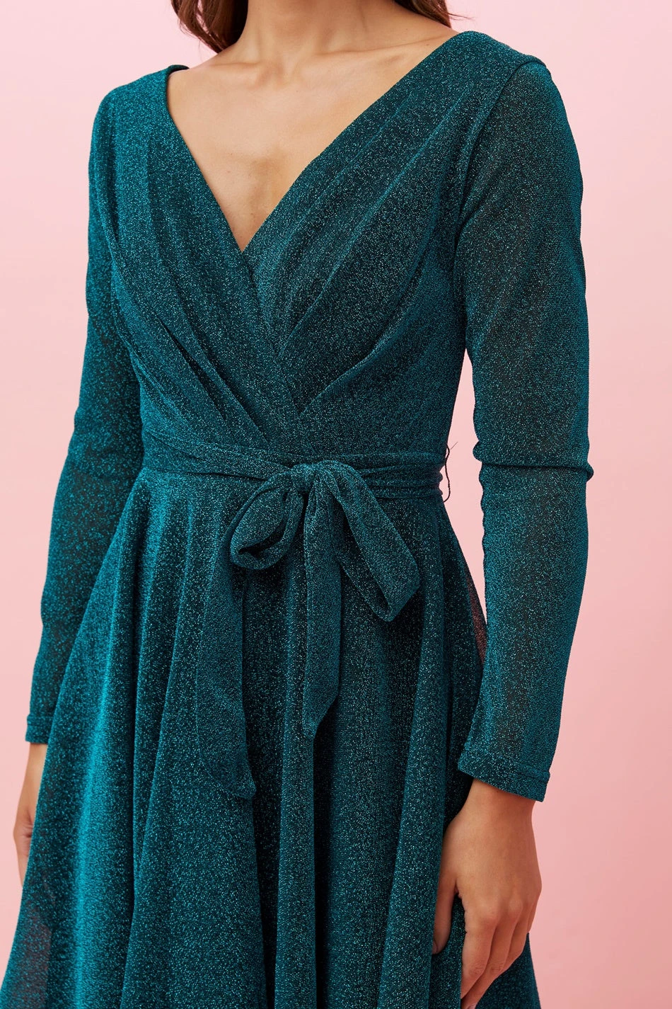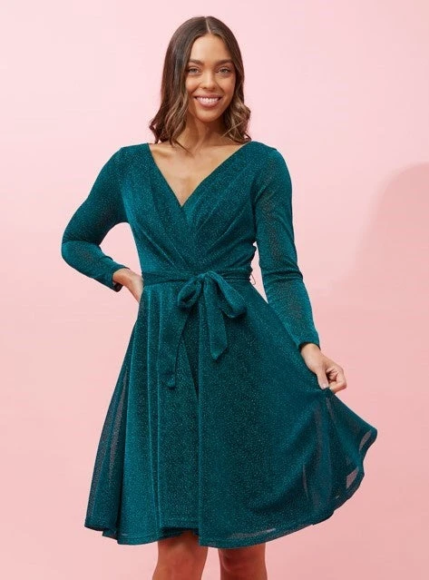 The perfect celebration dress with tie details to catch the light when you move whilst the flattering flared skirt balances out the look, ensuring you stay comfortable all night long.