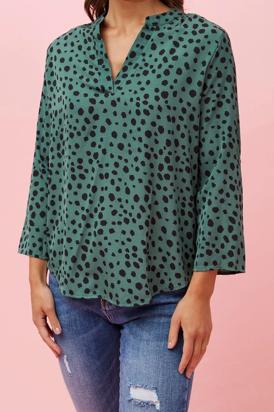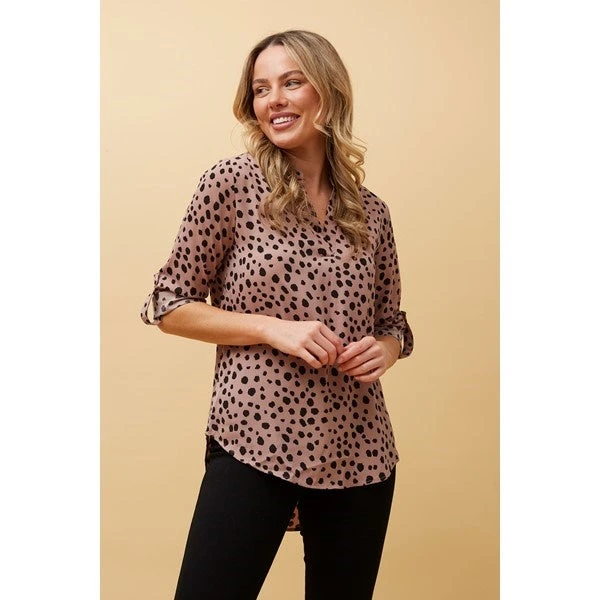 Add this elegant printed blouse to your wardrobe. Complete the look with high waisted jeans and heels for a casual daytime look.